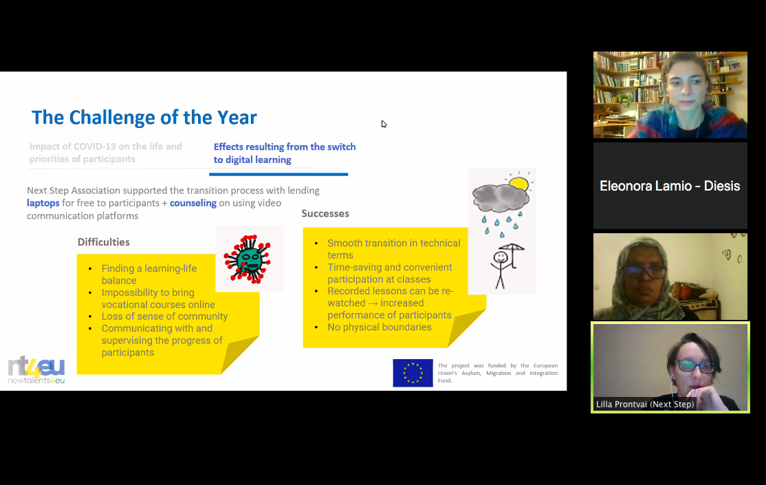 – Affordable learning opportunities to foster the labour market integration of third-country nationals in Hungary. Activities, results, and lessons learned from the NT4EU project: presentation of Lilla Prontvai (Next Step Association), project manager of the NT4EU project.